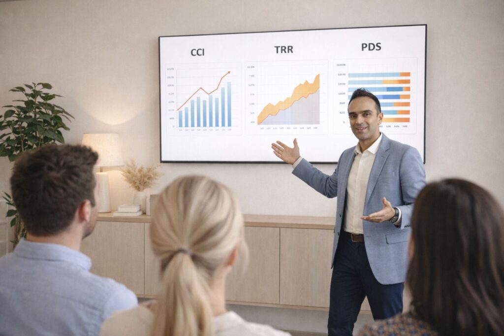 The Sprint is designed to produce evidence, not opinions. CCI and TRR are measured at baseline and again at Day 18–21. PDS is measured at Day 45–60 after the market has had time to process the repositioned message. Every number in the Proof Report is documented and verifiable.